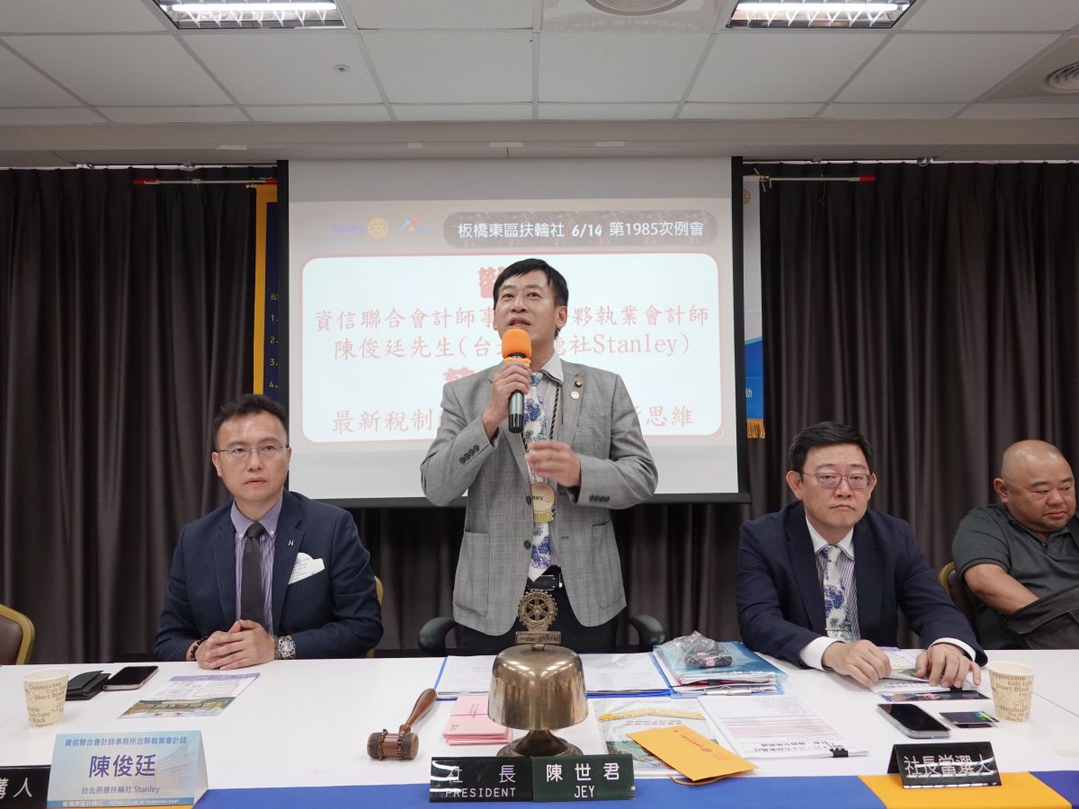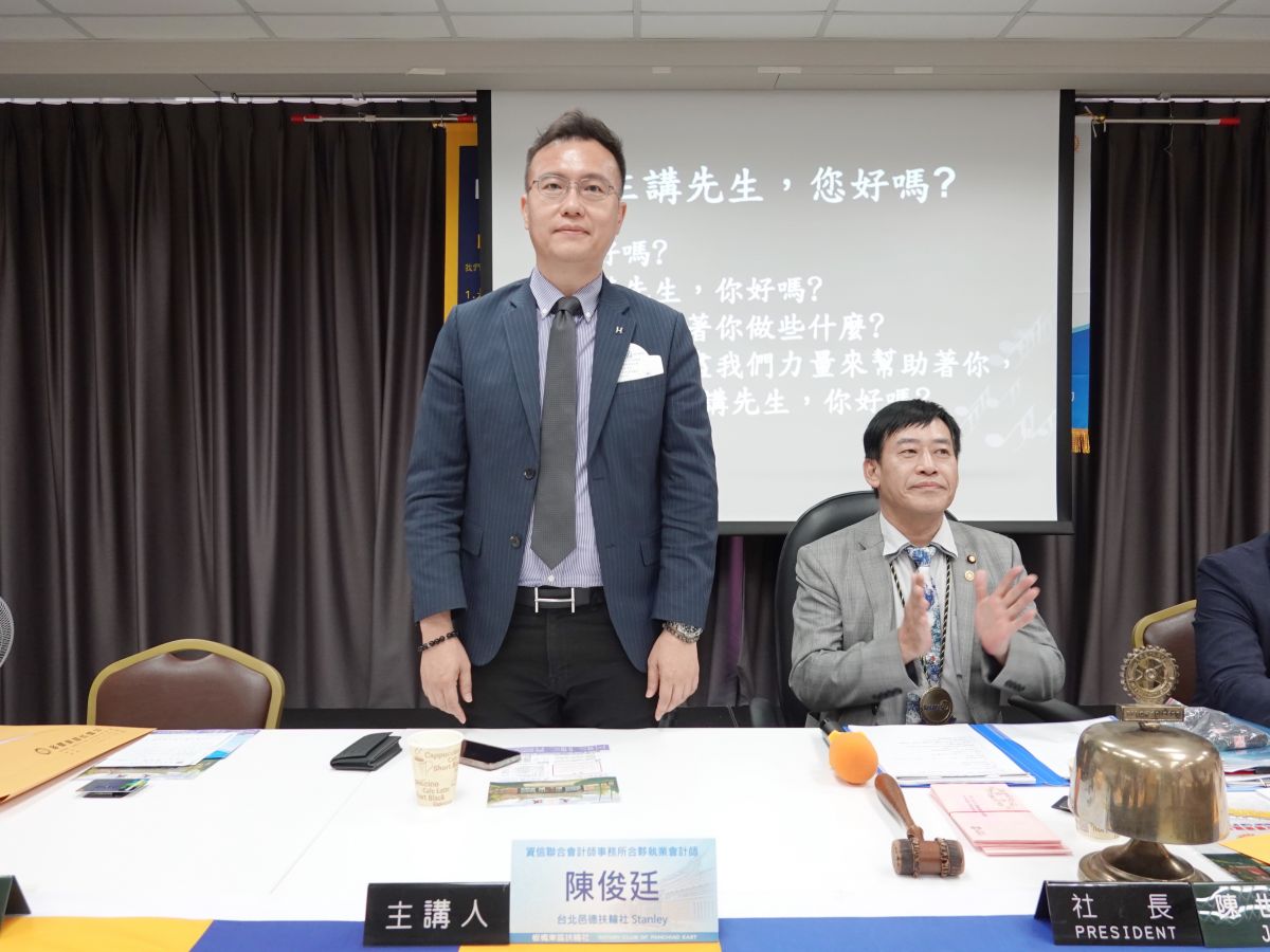 「最新稅制解析與財富傳承新思維」資信聯合會計師事務所合夥執業會計師 陳俊廷先生(台北邑德扶輪社社友Stanley)