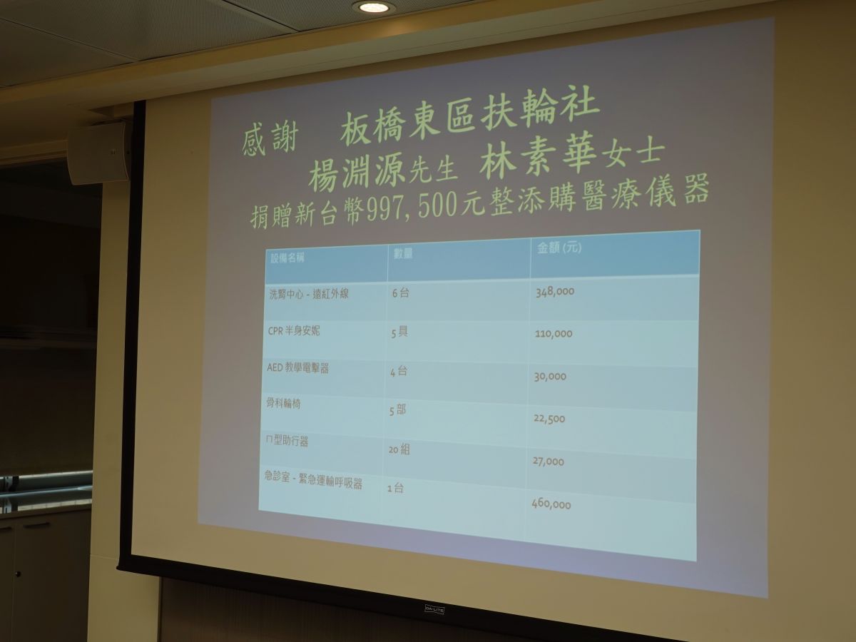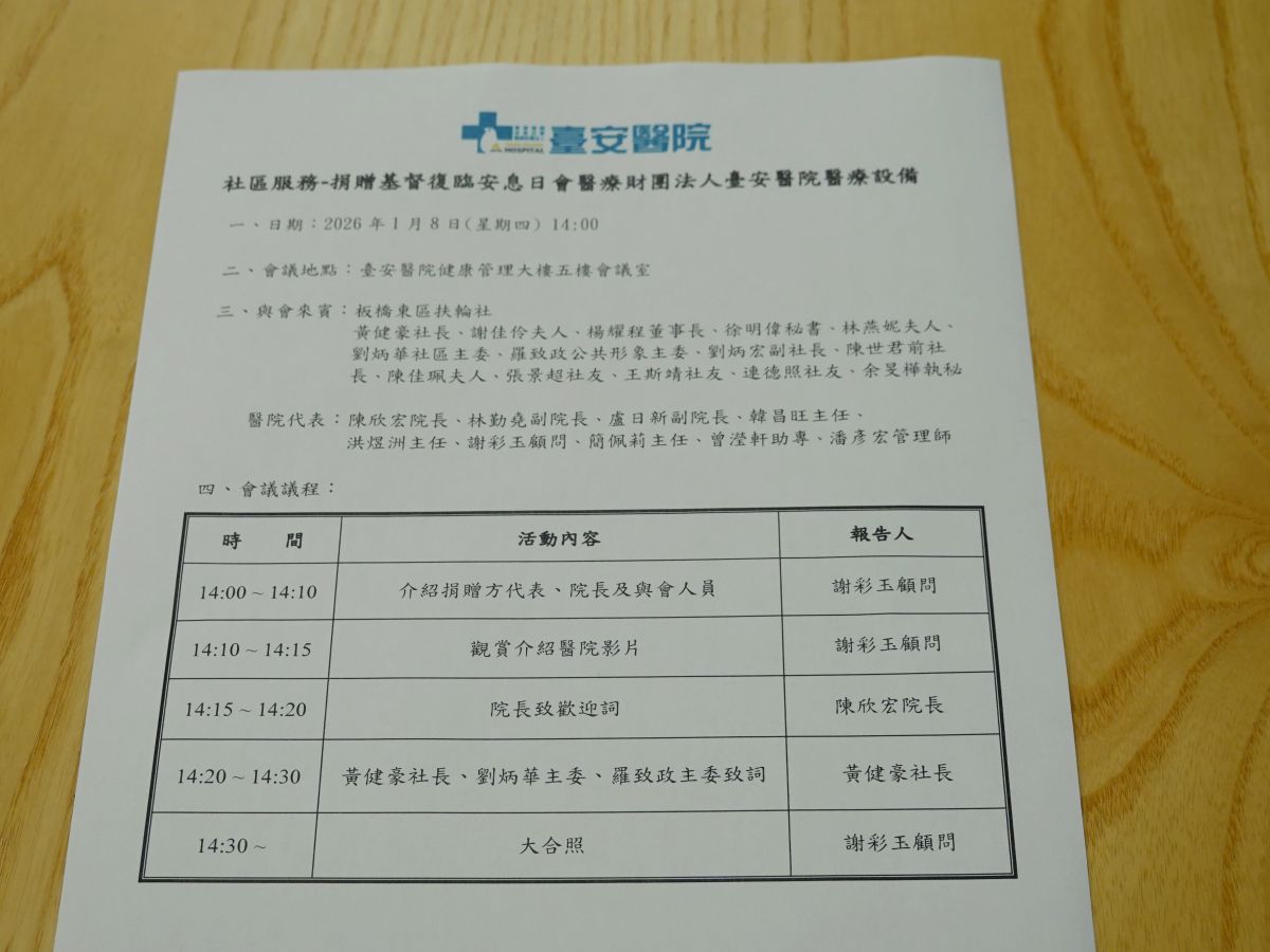 社區服務-捐贈基督復臨安息日會醫療財團法人臺安醫院醫療設備 - (2026/01/08)